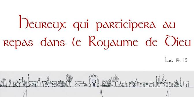 En ce temps-là, au cours du repas chez un chef des pharisiens, en entendant parler Jésus, un des convives lui dit : « Heureux celui qui participera au repas dans le royaume de Dieu ! » Jésus lui dit : « Un homme donnait un grand dîner, et il avait invité beaucoup de monde. À l’heure du dîner, il envoya son serviteur dire aux invités : “Venez, tout est prêt.” Mais ils se mirent tous, unanimement, à s’excuser. Le premier lui dit : “J’ai acheté un champ, et je suis obligé d’aller le voir ; je t’en prie, excuse-moi.” Un autre dit : “J’ai acheté cinq paires de bœufs, et je pars les essayer ; je t’en prie, excuse-moi.” Un troisième dit : “Je viens de me marier, et c’est pourquoi je ne peux pas venir.” De retour, le serviteur rapporta ces paroles à son maître. Alors, pris de colère, le maître de maison dit à son serviteur : “Dépêche-toi d’aller sur les places et dans les rues de la ville ; les pauvres, les estropiés, les aveugles et les boiteux, amène-les ici.” Le serviteur revint lui dire : “Maître, ce que tu as ordonné est exécuté, et il reste encore de la place.” Le maître dit alors au serviteur : “Va sur les routes et dans les sentiers, et fais entrer les gens de force, afin que ma maison soit remplie. Car, je vous le dis, aucun de ces hommes qui avaient été invités ne goûtera de mon dîner.” »