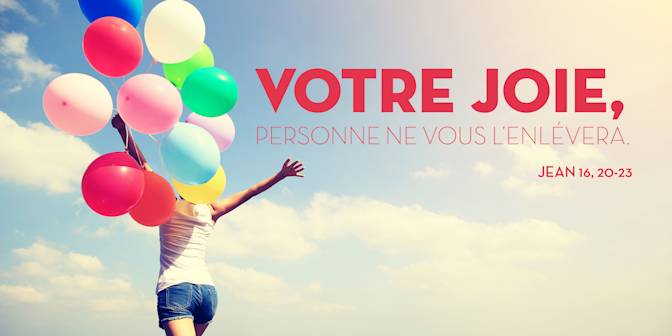 Vous aussi, maintenant, vous êtes dans la peine, mais je vous reverrai, et votre cœur se réjouira ; et votre joie, personne ne vous l’enlèvera.