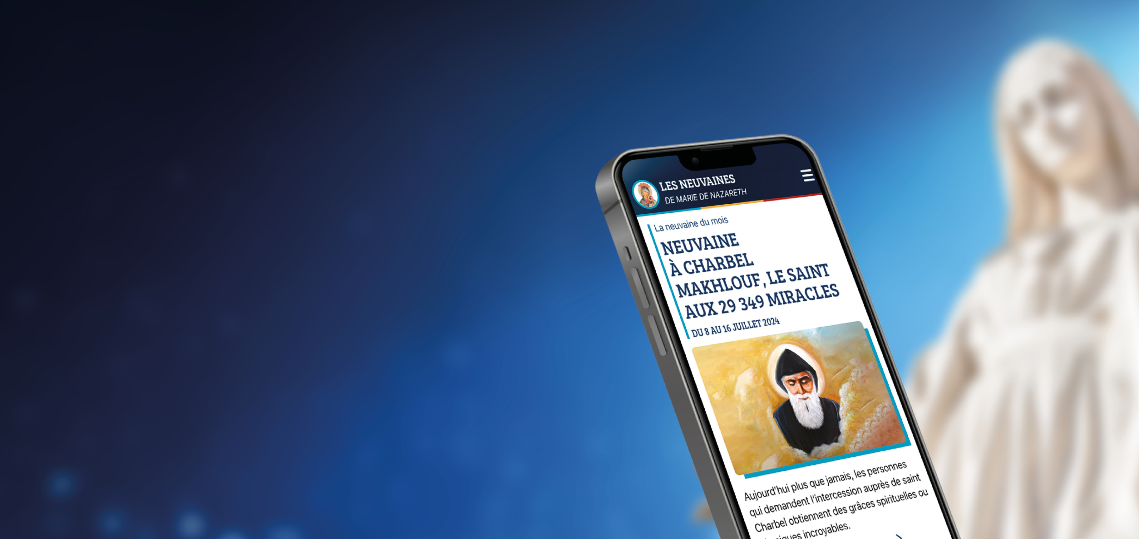 Comme leur nom l’indique, les neuvaines sont des prières qui se déroulent pendant les neuf jours qui précèdent souvent la fête d’un saint. L’Association Marie de Nazareth envoie par email chaque matin le contenu de la neuvaine mensuelle aux participants. La neuvaine, rédigée par un prêtre, un spécialiste de la spiritualité du saint ou un historien, se compose généralement d’un enseignement (établi sur les paroles ou la vie du saint), d’une méditation et de prières.