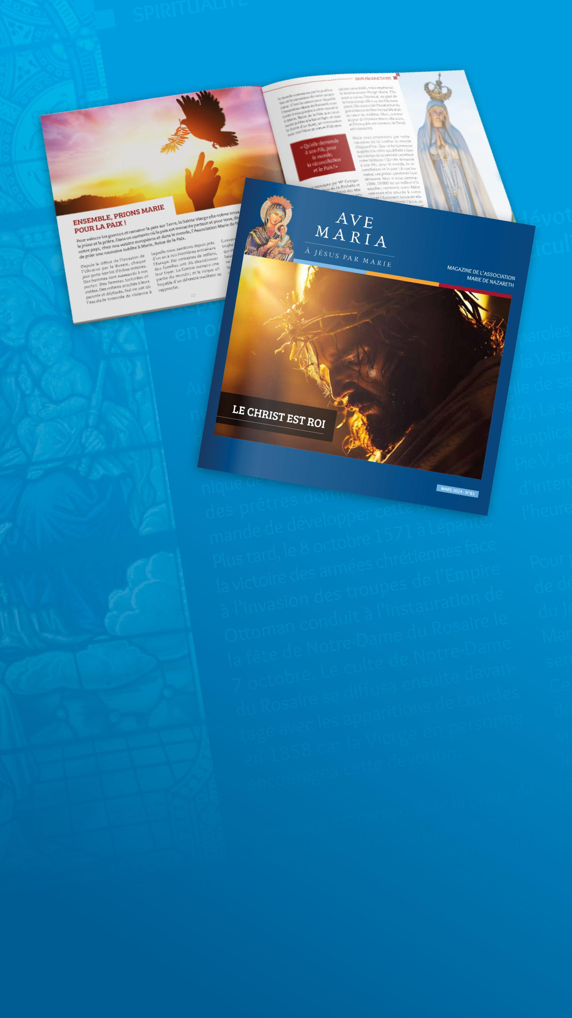 Tous les trimestres, l'Association Marie de Nazareth offre à ses donateurs le magazine Ave Maria.