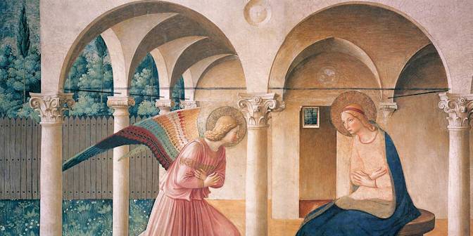 L’Annonciation de Fra Angelico est une œuvre extraordinaire, remarquable à bien des égards, notamment parce qu’elle fait référence à l’un des titres les plus étonnants attribués à la Vierge Marie : celui « d’hortus conclusus » (jardin clos). Le vocable d’« Hortus conclusus » (jardin clos) attribué à Marie apparaît dans la poésie médiévale et de la Renaissance. On en trouve mention dans le Cantique des cantiques (ct. 4:12) : « Un jardin clos est ma sœur, mon épouse; un jardin clos, une fontaine scellée ». L’Annonciation est l’une des fresques de Fra Angelico, qui date de 1430, située dans le couvent San Marco de Florence. Dans cette représentation, ce peintre frère dominicain de la Renaissance représente une Marie recueillie, assise sur un tabouret en bois. À l'arrière-plan, on aperçoit un jardin qui symbolise la fécondité du printemps et la nature intacte comme le ventre de la Vierge qui a donné naissance à Jésus-Christ. Le titre curieux de « jardin clos » prend tout son sens lorsque l’on garde à l’esprit qu’il a toujours fait partie du sensu fidei affirmant que la Mère de Dieu était sans péché personnel et sans péché originel. Fra Angelico nous invite à contempler ces caractéristiques mystérieuses de la Mère de Dieu afin que nous puissions grandir en amour pour elle.