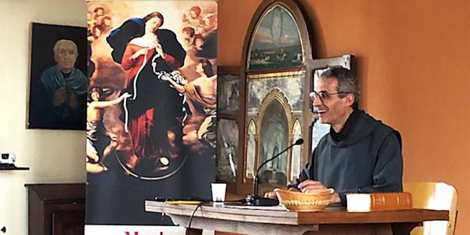 « Un mois après la retraite, les préoccupations du quotidien ont vite repris leur cours, et m'ont fait remettre au lendemain ce que j'aurais dû faire juste après ces jours de retraite. Comment vous exprimer toute notre gratitude pour nous avoir fait faire une halte ressourçante au milieu de nos activités ! Avec S., nous sommes revenues vivifiées, et sûres de l'Amour de notre Seigneur pour nous. Qu'il est bon de se blottir dans les bras de notre Maman du Ciel ! Nous gardons de nos rencontres du WE le souvenir d'une retrouvaille, et celle d'un partage "improbable" autour de l'art sacré des icônes !!! Celui, non moins beau, de témoignages tellement attendrissants et bouleversants de nœuds défaits par Marie. Sans compter le partage de la foi, grâce aux beaux chapelets médités, et cette prédication de Frère François, MAGNIFIQUE ! Pour tout cela, un immense Merci. Nous ne manquerons pas de diffuser autour de nous la neuvaine de Marie qui défait les nœuds, et le sanctuaire de Pellevoisin. Nos routes se recroiseront sûrement ! »