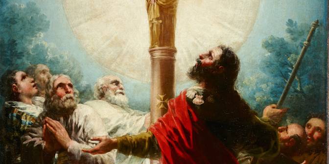 Saint Jacques rencontre de nombreux obstacles dans sa mission d’évangélisation à cause des persécutions contre la communauté chrétienne. La Vierge Marie est apparue, élevée sur une colonne, pour le réconforter et lui demander d’ériger un temple en ce lieu. Cette colonne soutient aujourd'hui la statue de la Vierge dans la basilique Notre-Dame-du-Pilier de Saragosse.