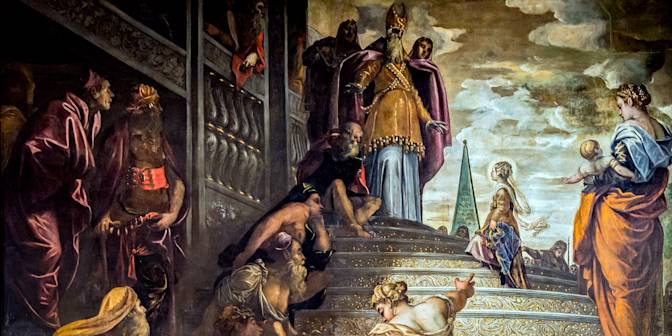 Au temple, le prêtre laisse seul Joachim devant le tabernacle et « un ange (...) présente à Joachim une feuille sur laquelle se lisent les noms d’Hélia, d’Anna et de Miriam : une forme d’arche ou de tabernacle paraît à côté du dernier de ces noms. L’ange dépose cet écrit sur la poitrine de Joachim, lui dit que la stérilité de son mariage n’est pas une honte, mais sa gloire, car sa femme va concevoir le fruit immaculé de la bénédiction que Dieu a répandue sur lui, le couronnement de la bénédiction d’Abraham. »