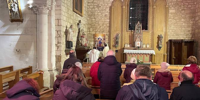 Aujourd'hui, on vous raconte l'installation du tableau Marie qui défait les nœuds dans la paroisse d'Oléron, qui a eu lieu le 7 décembre 2023.