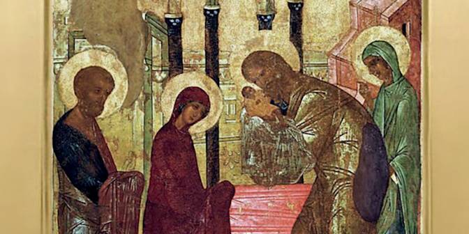 Ô Marie, toi qui es allée avec ton époux Joseph présenter Jésus, ton premier-né, au Temple de Jérusalem, 40 jours après sa naissance ; toi qui as accompli, en couple, cette démarche de purification et de sacrifice en conformité à la Loi ; toi qui as permis à Siméon de voir le salut, et qui a reçu sa bouleversante prophétie, sois bénie.