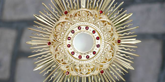 « Je t’adore prosterné, Dieu caché vraiment sous ces apparences, à toi mon cœur se soumet totalement, car en te contemplant, il est tout entier anéanti. La vue, le toucher, le goût sont ici en défaut, l’ouïe seule me donne la sécurité de la foi. Je crois tout ce qu’a dit le Fils de Dieu : rien n’est plus vrai que sa parole de Vérité elle-même. Sur la Croix se cachait ta seule divinité, mais ici, en même temps, se cache aussi ton humanité. Toutes les deux, cependant, je les crois et les confesse. Je demande ce qu’a demandé le larron pénitent. » (cf. Saint Thomas d’Aquin, Hymne Adoro te devote)