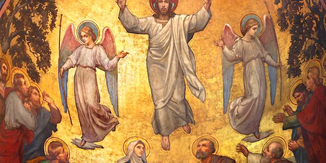 Après ces paroles, tandis que les Apôtres le regardaient, il s’éleva, et une nuée vint le soustraire à leurs yeux. Et comme ils fixaient encore le Ciel où Jésus s’en allait, voici que, devant eux, se tenaient deux hommes en vêtements blancs, qui leur dirent : « Galiléens, pourquoi restez-vous là à regarder vers le Ciel ? Ce Jésus qui a été enlevé au Ciel d’auprès de vous, viendra de la même manière que vous l’avez vu s’en aller vers le Ciel. »