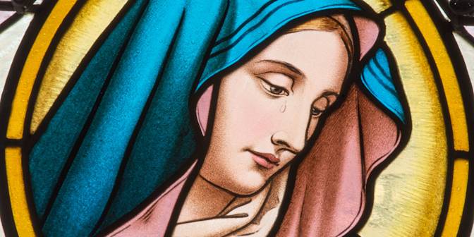 © iStock / Getty Images Plus/sedmak Vitrail de la Vierge dans l’église carmélite de Vienne.
