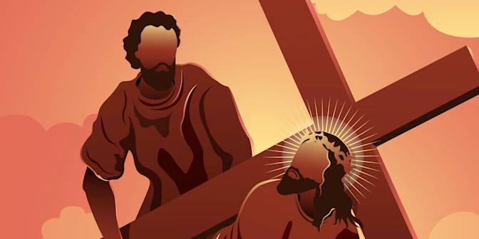 « Contemple-moi sur le chemin du Calvaire, chargé de la lourde croix. Regarde, derrière moi, Simon qui m’aide à la porter et considère d’abord deux choses : Premièrement cet homme, quoique de bonne volonté, est cependant un mercenaire, car s’il m’accompagne et partage le poids de ma croix, c’est pour gagner la somme convenue. Aussi, lorsqu’il se sent accablé de fatigue, laisse-t-il peser davantage le fardeau sur mes épaules, et c’est ainsi que Je tombe deux fois encore sur le chemin. Secondement, cet homme est réquisitionné pour m’aider à porter une partie de la croix, mais non pas toute ma croix. »