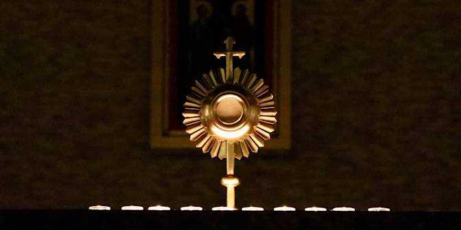 Le prêtre, bouleversé, s’agenouille et demande pardon. Le Seigneur lui rend alors le calice.