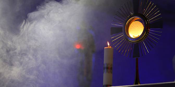 Le prêtre comprend ce qui se passe. Très ému, il s’empare de l’hostie miraculeuse et la pose avec soin sur un plateau qu’il met devant le tabernacle.