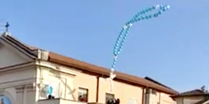 L'Évangile nous rappelle de nous faire tout petits, de redevenir des enfants. Les Apôtres du Sacré-Cœur de Jésus, à Avezzano (Italie centrale), ont eu une idée enfantine, dans le meilleur sens du terme. S'il est une chose que les enfants adorent, ce sont les ballons... sans doute parce qu'ils nous donnent l'impression qu’une simple ficelle nous relie au ciel. Ces religieuses des Abruzzes ont fabriqué un chapelet géant avec des ballons et l'ont fait voler sur le toit de leur église. Comme le rapporte Terre Marsicane, un média local : De tous les coins de la ville d'Avezzano, on peut apercevoir un chapelet géant fait de 70 ballons de couleur. Soixante ballons bleus forment les grains principaux, et dix autres forment la croix et les grains du Notre Père, pour une longueur totale de 21 mètres (...) Selon Sœur Carla Venditti : « Les habitants et nos voisins nous ont fait savoir pendant ces jours d'isolement qu'ils avaient besoin d'un signe d'espoir. » En période de quarantaine, les montagnes sont inaccessibles, mais pas les toits ! Cependant, « le chapelet sur les toits d'Avezzano n'est pas seulement le signe ou le geste d'une simple demande d'aide », explique Sœur Carla à Terre Marsicane. « C'est avant tout une invitation à nous unir dans le Seigneur. Nous diffusons la récitation du Rosaire chaque jour sur Facebook à des centaines de personnes (...) pas seulement de la ville, mais de toutes les régions d'Italie et du monde, et celles-ci prient avec nous grâce à cet important media social. Nous diffusons également l'Adoration, ainsi que la messe, depuis notre institut principal à Rome », dit-elle pour finir. Sœur Carla est bien connue dans les Abruzzes pour son engagement dans la lutte contre la prostitution de rue. Aujourd'hui, sa mission la ramène dans les murs du couvent. Elle est la preuve que même si vous restez enfermé, vous pouvez aller loin. La prière est le fil qui nous lie étroitement au Ciel et la prière du Rosaire qui répète patiemment des Je vous salue Marie en série est comme un cordon ombilical avec lequel notre Mère du Ciel nous maintient en vie ici-bas et à cet instant-même.