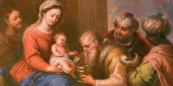 « Entrant dans le logis, ils virent l'enfant avec Marie sa mère, et, tombant à genoux, se prosternèrent devant lui ; puis ouvrant leurs cassettes, ils lui offrirent en présent de l'or, de l'encens et de la myrrhe » (Mt 2,11). Joseph est témoin de cette attitude des Mages à l'égard de l'enfant. N'est-ce pas pour lui une étonnante confirmation de ce que l'ange lui avait annoncé, comme de ce que les petits bergers lui avaient dit ? Les mages, ces hommes venus d'Orient, ces hommes respectables et sages aux yeux des hommes, n'ont pas hésité à faire ce long voyage pour venir se prosterner devant « l'enfant », ce tout-petit qui n'est pas comme les autres enfants - Joseph, après Marie, le sait mieux que personne. Ce ne sont pas les autorités religieuses de Jérusalem qui viennent se prosterner devant lui - bien qu'elles aient été alertées - mais ces sages d'Orient. Comme les bergers sont passés devant les descendants de David, ainsi les mages passent devant les autorités religieuses de Jérusalem. Pour Joseph, cet homme juste, droit, n'est-ce pas là la manifestation de l'ordre de la sagesse divine ? Les pauvres et les petits passent devant ceux qui sont satisfaits d'eux-mêmes ; or les bergers et les mages sont bien ces pauvres et ces petits, ces humbles, ces « affamés ». N'est-ce pas ce que Marie avait prophétisé dans son Magnificat ? « Il a dispersé les hommes au cœur superbe, il a renversé les potentats de leurs trônes et élevé les humbles, il a comblé de biens les affamés et renvoyés les riches les mains vides ».
