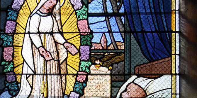 À Pellevoisin (commune du Centre de la France), le samedi 9 septembre 1876, Estelle Faguette (1843-1929) reçut une 9e visite de la Sainte Vierge qui lui apparut à la fin de son chapelet. Nul doute que la pauvre Estelle n'a pas dû être très fière en entendant la Vierge lui faire quelques reproches : « Tu t'es privée de ma visite le 15 août, tu n'avais pas assez de calme. Tu as bien le caractère français. Il veut tout savoir avant d'apprendre, et tout comprendre avant de savoir. Hier encore, je serais venue, tu en as été privée. J'attendais de toi cet acte de soumission et d'obéissance. (…) Depuis longtemps les trésors de mon Fils sont ouverts : qu'ils prient ! » Et Estelle commente : « En disant cela, la sainte Vierge souleva la petite pièce de laine qu'elle portait sur la poitrine. J'avais toujours vu cette petite pièce, sans savoir ce que c'était, car, jusqu'alors, je l'avais vue toute blanche. En soulevant cette pièce, j'aperçus un cœur rouge qui ressortait très bien. J'ai pensé de suite que c'était un scapulaire du Sacré Cœur. Elle me dit en le soulevant : « J'aime cette dévotion. » Elle s'arrêta encore, puis elle reprit : « C'est ici que Je serais honorée. »
