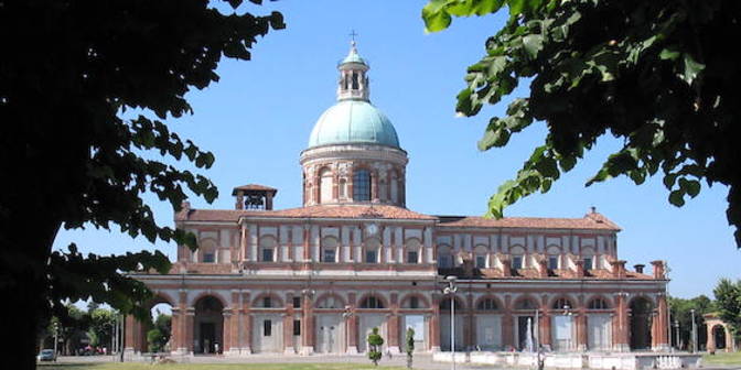 Le sanctuaire de Santa Maria del Fonte (Sainte Marie de la Source, aussi appelé Notre-Dame de Caravaggio) a été édifié entre les XVIe et XVIIIe siècles, proche de la ville de Bergamme, en Italie. Initiée plus précisément en 1575, sa construction a été fortement encouragée par saint Charles Borromée, archevêque de Milan. Le lieu correspond à celui d’une apparition de la Vierge Marie, survenue le 26 mai 1432, à une jeune paysanne de la région, Giannetta de’Vacchi. Celle-ci raconte avoir vu une jeune femme semblable à une reine qui, se présentant comme Marie, Mère de Dieu, l’aurait invitée à ne pas avoir peur, avant de lui confier le message suivant : « Il m’a été concédé de sauver les chrétiens des punitions imminentes et méritées de la Justice Divine, et de venir annoncer la Paix. » La Vierge a également laissé plusieurs instructions, parmi lesquelles la demande de construction d’une chapelle sur le lieu de l’apparition, ce qui fut fait peu après, avant la construction de l’édifice actuel. La tradition attribue à la source située sous l’autel principal, et coulant encore aujourd’hui, une origine miraculeuse. Les pèlerins fréquentant ce majestueux sanctuaire bergamasque ont donc l’habitude de venir y tirer de l’eau. L’église a été élevée au rang de basilique mineure par le saint pape Pie X en 1906.