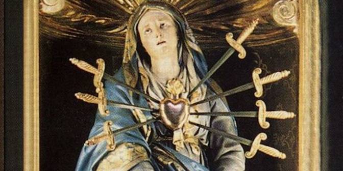 Au nord de l’Italie, dans un faubourg de Turin en l’an 1731, un malheureux pécheur qui avait, entre autres crimes, tué son père et son frère, s’était enfui pour échapper à la Justice. Or, un jour, ayant assisté à un sermon sur la miséricorde de Dieu, il alla se confesser au prêtre qui avait prêché. Après avoir entendu le récit des crimes de son pénitent, le prêtre l’envoya à un autel dédié à la Vierge Marie honorée sous le titre de « Mère des Douleurs », afin de lui demander la contrition et le pardon de ses péchés. Le pécheur y alla, se mit à prier, et là, au pied de l’autel, il mourut de regret. Le lendemain, tandis que le prêtre recommandait aux fidèles de prier pour le pauvre homme, une blanche colombe parut dans l’église et laissa tomber un billet aux pieds du prêtre. Il y lut ces paroles : L’âme du défunt, à peine sortie de son corps, est allée en paradis. Et vous, continuez à prêcher la miséricorde de Dieu !