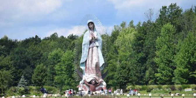 S’élevant à plus de 15 mètres de haut avec son piédestal, cette statue de Notre-Dame de Guadalupe à Windsor, dans le nord-est de l’Ohio, n’est pas seulement magnifique à voir, elle détient aussi le nouveau record du monde pour sa taille. Le projet est parti d’un diacre, Ed Heinz, responsable du Sanctuaire marial Servants of Mary Center for Peace (Servants de Marie pour la paix), qui a acheté une ferme dans le seul but de construire ce sanctuaire. Après avoir longuement prié pour savoir comment il financerait cet effort, il a rencontré un professeur d'art à l'Université du Texas-Rio Grande Valley, qui a accepté de le construire à ses propres frais. Une fois achevée, la statue de Notre-Dame de Guadalupe a été bénie le 5 août 1995. Elle se tient au-dessus d'un ange et d'un nuage, atteignant 15 mètres de hauteur en tenant compte aussi du halo en métal qui l'entoure. Sa surface est décorée par des milliers de tesselles de couleurs vives, formant une riche mosaïque. Orientée en direction de l'est, la statue fait face à un petit étang entouré d’un grand chapelet blanc avec son crucifix, le tout éclairé la nuit.