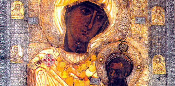 Au temps de l'hérésie iconoclaste, une pieuse veuve de Nicée jeta à la mer une merveilleuse Icône de la Mère de Dieu, afin qu'elle échappât à la destruction. Bien des années plus tard, au XIe siècle, les moines du Monastère d'Iviron (sur le Mont Athos, en Grèce) virent pendant plusieurs jours une immense colonne de feu s'élever de la mer vers le ciel, au-dessus de la Sainte Icône qui flottait debout sur les flots. Mais chaque fois que l'un d'eux cherchait à s'en approcher, l'Icône s'éloignait. À cette époque vivait à Iviron un saint moine géorgien, nommé Gabriel. La Mère de Dieu lui apparut et lui ordonna de se rendre sur le rivage pour y recueillir son Icône. Tous les moines réunis virent alors avec stupéfaction Gabriel marcher avec assurance sur les flots, recueillir l'Icône et la ramener sur la berge. Elle fut déposée dans le Catholicon du Monastère mais le lendemain, le sacristain constata que l'Icône avait disparu. Après bien des recherches on la découvrit au-dessus de la porte d'entrée du Monastère ! Finalement, la Mère de Dieu apparut à Gabriel et lui demanda de faire savoir aux frères qu'Elle ne désirait pas être gardée et protégée par eux, mais qu'Elle était venue, Elle, pour les préserver de tout danger, conformément à la grâce qu'elle avait acquise de son Fils quand Elle lui avait demandé que la Sainte Montagne lui soit accordée pour devenir son « Jardin ». Depuis lors la « Portaïtissa » (Gardienne de la Porte) est vénérée dans une chapelle construite spécialement à l'entrée du Monastère. Cette icône a accompli un si grand nombre de miracles qu'Elle est à juste titre considérée comme l'Icône par excellence de la Mère de Dieu miséricordieuse.