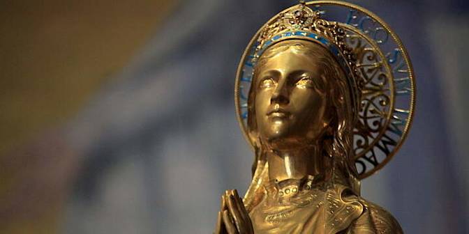 La maternité de la Sainte Vierge s’exerce dans le domaine de la transmission de la grâce. Elle est Mère, Mère du Christ, Mère du Christ total, elle est co-rédemptrice ; elle est par conséquent associée à la production de la grâce avec le Christ. Elle est immaculée, par conséquent toute sainte, toute belle : Dieu ne lui refuse rien. Elle est la reine assise à sa droite à laquelle il ne peut rien refuser. Puissance d’intercession extraordinaire qui lui permet de faire jaillir de Dieu la grâce, comme elle veut, à cause de sa sainteté, parce qu’elle est la plus belle des créatures, un prodige dans le ciel. La Vierge ne produit pas la grâce, mais elle la fait jaillir du sein de Dieu.