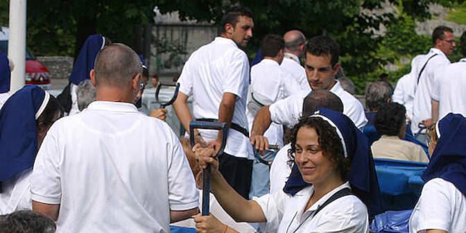 Janvier 2012 : l'ambulance fonce vers Annecy. Bien calé dans mon brancard-coquille, je m'économise au maximum. La dame médecin du SAMU qui m'a récupéré quelques heures plus tôt, hurlant de douleur sur le bord de la route, est au téléphone à côté de moi. Je me souviens des 3 piqûres de morphine dans l'ambulance des pompiers, plus vaguement de mon passage dans le tunnel du scanner à l'hôpital de Thônon. Déjà je ne souffrais plus. Maintenant je l'entends qui précise : « Rupture d'anévrisme de l'aorte abdominale… » M… ! Je vais mourir ! Rupture d'anévrisme, je sais ce que ça signifie... ça y est c'est mon tour, la peur m’envahit dans une angoisse terrible ; j'ai l'impression de tomber dans un trou. D'abord, la révolte : ce n'est pas juste, pas maintenant... Puis la résignation : après tout, j'aurais eu de la chance, dans ma vie. Bon, je vais prier, ça va me calmer un peu. Je me souviens d'un coup : 30 ans plus tôt, le curé de chez nous, devant le corps de ma mère, a récité le « Je vous salue Marie ». Et là seulement, j'ai compris que cette prière, que je récitais comme un perroquet, était celle du dernier moment : « Priez pour nous, pauvres pécheurs, maintenant et à l'heure de notre mort. » Et l'heure de ma mort, c'est maintenant. Alors, je me mets à prier : « Je vous salue, Marie… » On arrive, le plafond des couloirs de l'hôpital défile à toute vitesse... des blouses bleues tout autour de moi. Après 4 jours dans le coma, mes 2 enfants et mon épouse sont auprès de moi quand j'ouvre les yeux... Le chirurgien dira un mois plus tard : « C'était limite, limite ! » Mais moi, je sais : l'évidence, c'est que Marie m'a pris par la main et protégé. Je l'ai compris immédiatement. Remonter la pente fut difficile et douloureux mais j'avais déjà mon idée : remercier Marie en me faisant hospitalier à Lourdes ! Un an après avoir recouvré des forces, je suis devenu hospitalier plusieurs années de suite ! J’ai rencontré là des gens merveilleux qui m'ont fait retrouver le chemin de l’Église que j'avais perdu de vue ! Cette conversion a changé ma vie. Deo gratias ! Merci, Vierge Marie !