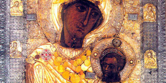 Au XIe et XIIe siècle, d’après la tradition, une icône venue droite sur les flots, s’est doucement posée sur le rivage de l’Athos près du monastère d’Iviron (Grèce). Une icône représentant la Mère de Dieu qui porte sur un bras l’Enfant en majesté et, de l’autre main, le désigne comme « le chemin, la vérité et la vie ». Les moines la portèrent dans le « catholicon », l’église qui se trouve au centre des bâtiments monastiques. Mais l’icône, le lendemain avait disparu. On la retrouva au seuil du grand portail. La chose s’étant renouvelée, c’est là qu’on édifia pour elle un petit sanctuaire. Et on la surnomma « Portaïtissa » : « Celle qui garde le seuil ». Passent les siècles… Vers 1980, dans un ermitage, celui de la Nativité, s’ouvre un atelier d’icônes. La première qui fut peinte là était une libre copie de la « Portaïtissa ». À la même date, un Chilien, José Munos, devenu orthodoxe, professeur d’histoire de l’art à Montréal, se rend au Mont Athos pour entrer en contact avec un monastère d’iconographes. Il découvre l’ermitage de la Nativité. On lui fait visiter l’atelier. Il reste en arrêt, bouleversé, devant l’image de la « Portaïtissa ». Il arrive qu’on rencontre une icône comme on rencontre quelqu’un qui vous aime et qu’on va aimer : une révélation, une vision. La chasteté monastique prédispose à ces « coup de foudre » spirituels. (…)