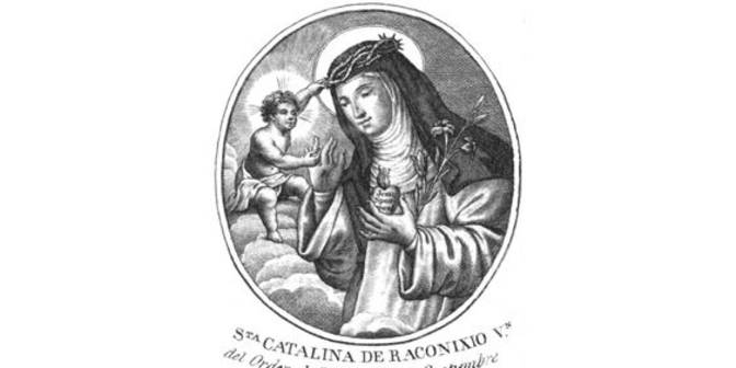 Fêtée le 4 septembre, la bienheureuse Catherine de Racconigi (1487-1540), était tertiaire dominicaine (o.p). Elle s’appelait Catherine Mattei, née à Racconigi dans le Piémont italien en 1487, en un milieu modeste. Son père était serrurier et sa mère tisserande. À l'âge de cinq ans, Catherine eut des visions de Jésus-Christ, de la Vierge et d'autres saints, dont sainte Catherine de Sienne. Elle avait de fréquentes extases. En 1499, elle vit la Sainte Vierge « vêtue d’une robe de drap d’argent », avec un « diamant » au milieu du front. Elle était accompagnée de l’Enfant Jésus. L’apparition lui demanda de lui donner son cœur. « Je ne sais pas où il est, répondit la fillette. Si vous le trouvez, je vous le donne ! » L’Enfant Jésus lui dit : « Je t’épouse en foi, en espérance et en charité. » Plus tard, elle rejoignit l'Ordre des Prêcheurs en tant que tertiaire. Ses visions augmentèrent, et elle reçut les stigmates. Au long de ces apparitions, Jésus enfant grandit en même temps que Catherine qui mena une existence de pénitence et d’expiation. Toute sa vie, Catherine fut visitée par de nombreuses personnes pour lui demander conseils spirituels et prières. Rejetée par son entourage, elle mourut en exil à Caramagna au Piémont. Mgr Jean Juvénal Ancina († 1604), évêque de Saluces, ouvrit un procès informatif en vue de sa béatification, réalisée en 1810.
