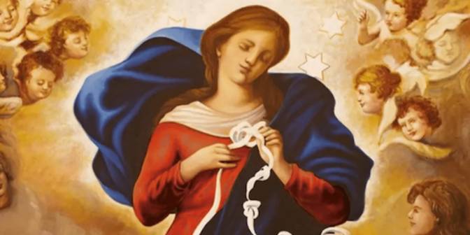« Ma belle-mère a été appelée par le poste de police local de son village, en Angleterre, car un de ses voisins avait porté plainte contre elle. Il lui avait donné de l'argent il y a environ 10 ans et avait, depuis, pris des produits alimentaires dans le magasin de ma belle-mère pendant plus d'un an. Selon ma belle-mère, cette personne avait pris des articles d'une valeur bien supérieure au montant emprunté. Mais l’homme avait refusé de l'accepter et avait insisté pour qu’elle lui rembourse l'argent emprunté avant de porter plainte à la police. Nous étions inquiets car nous n'avions pas l'habitude de nous rendre au commissariat de police. Ma femme n'a cessé de prier la prière à Marie qui défait les nœuds. Lorsque nous nous sommes rendus au poste de police, à notre grande surprise, l'un des policiers, qui avait également été trompé par cet homme, est venu à notre aide et a informé l'inspecteur de police à propos de cette personne et l'a pris à partie pour avoir harcelé une femme. Nous sommes convaincus que cela s'est produit par l'intercession de Notre Dame car, sans son aide, nous n'avions personne pour nous aider dans cette situation. Marie qui défait les nœuds avait envoyé ce policier pour nous aider. »