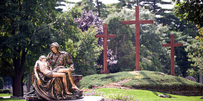 La plus grande épreuve et la plus grande douleur survinrent pour Marie au moment où elle fut témoin de la Passion : elle dut voir son Fils se laisser fouetter, battre, couronner d'épines, moquer et être couvert de ridicule, de son plein gré. Puis elle l’a suivi, martyr battu et couvert de sang, tandis qu'il portait sa Croix en haut du calvaire. Elle l'a vu mourir, et elle a reçu son corps ensanglanté et sans vie dans ses bras, avant qu’on le mette au tombeau. Jésus nous a donné sa mère alors qu'il expirait en croix. Marie lui a tout donné. Puisqu’elle est devenue notre Mère, elle fera la même chose pour nous. Tandis que nous endurons nos propres souffrances dans la vie, elle nous accompagne comme elle l'a fait pour Jésus. Elle se tient aussi au pied de nos croix à nous. Voilà pourquoi on l'appelle Notre Dame, Santé des malades. Le magnifique Stabat Mater (« La Mère triste se tenait près de la Croix ») a été écrit pour décrire la douleur et la souffrance que Marie a subies pendant la crucifixion et la mort de son Fils. Voici les deux premiers et les deux derniers versets du Stabat Mater, qui encadrent l'hymne entier : Debout, la Mère douloureuse près de la croix était en larmes devant son Fils suspendu. Dans son âme qui gémissait, toute brisée, endolorie, le glaive était enfoncé. (…) Christ, quand je partirai d'ici, fais que j'obtienne par ta Mère la palme de la victoire. Au moment où mon corps mourra, fais qu'à mon âme soit donnée la gloire du Paradis. Amen. Comme elle l'a dit à Juan Diego à Guadalupe, 1500 ans après avoir contemplé son Fils premier-né pendu à la Croix, elle nous redit : Ne suis-je pas ta mère, ici à tes côtés ? N'es-tu pas protégé par mon ombre ? Ne suis-je pas là pour te défendre ?
