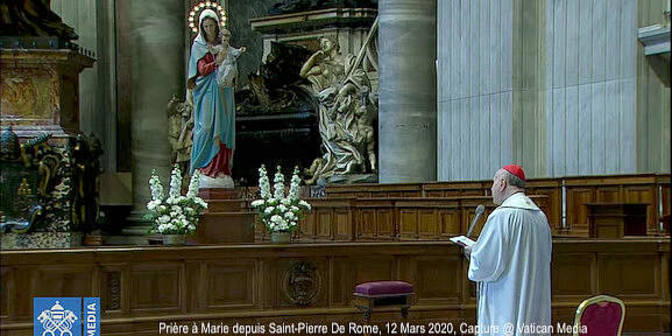 Le deuxième titre marial de la Vierge pour la ville de Rome est sûrement encore moins connu des catholiques qui vivent en dehors de Rome. La dénomination de « Mère du Divin Amour » - Madonna del Divino Amore - est associée à une église de campagne située à environ 19 km du centre historique de Rome. Le premier miracle de la Vierge du Divino Amore remonte au 18e siècle, bien plus tard que celui de l'icône Salus Populi Romani. A cette époque, un pèlerin fut attaqué par des chiens sauvages alors qu’il se dirigeait vers la basilique Saint-Pierre et, apercevant sur une tour voisine une ancienne peinture de la Vierge à l'Enfant, il cria vers elle pour l’appeler à son secours. Les chiens laissèrent alors le pèlerin tranquille, et celui-ci attribua ce miracle à la Vierge. Son histoire répandit très vite la dévotion à la Mère de l'Amour Divin et un sanctuaire fut finalement construit en son honneur. L'image de la Mère du Divin Amour devint importante pour toute la ville de Rome au plus fort de la Seconde Guerre mondiale. Craignant que la guerre n'atteigne la ville, les habitants de Rome supplièrent les prêtres et le pape de transporter l'image depuis son sanctuaire jusqu’à l'église de Saint-Ignace, située au centre de Rome. Lorsque les Alliés libérèrent la ville le 4 juin 1944, le pape Pie XII déclara que la Mère du Divin Amour avait sauvé Rome. Aujourd'hui, les catholiques de Rome continuent à se tourner vers la Madonna del Divino Amore lorsqu'ils sont en difficulté. Et chaque samedi, depuis Pâques jusqu’au mois d’octobre, des centaines de pèlerins parcourent de nuit les 19 kilomètres qui séparent Rome du sanctuaire. Ces pèlerinages, qui commencent à minuit et se terminent par une messe à 5 heures du matin dans le sanctuaire, sont rarement mentionnés dans les guides ou dans les listes de « Choses à faire à Rome ». Ainsi le Pape remplit son rôle d'évêque de Rome en faisant allusion aux deux centres marials les plus importants de la ville ; ensuite,il invite le monde entier à entrer dans l'intimité de Rome avec la Vierge Marie. En ces temps de distanciation sociale, d'anxiété accrue et de peur mondiale, le pape François ne fait pas seulement appel à la dévotion catholique, il nous appelle tous à considérer Marie non pas comme une aide virtuelle, mais comme une mère qui a fait ses preuves en matière de guérison, de protection et de garde de son peuple.
