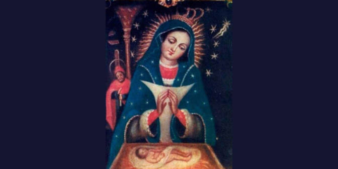 La basilique de Notre-Dame d’Altagracia (de « Haute Grâce ») est située à 180 km de Saint Domingue, en République Dominicaine. Le sanctuaire s'appelle aussi Notre-Dame de la Nina, du nom d'une jeune adolescente à l'origine du sanctuaire. En effet, un colon espagnol avait l’habitude de se rendre à la ville de Ozama faire quelques courses. Cette fois-là, sa fille Nina, âgée de 14 ans, lui avait demandé une image de Notre-Dame de « Haute Grâce ». Mais il revint sans l’avoir trouvée. Il fit étape dans une auberge, et confia sa peine à un vieil ami qu’il y rencontra. Un autre personnage intervint alors et sortit de sa besace une toile représentant Notre-Dame de « Haute Grâce », la Vierge en prière devant l’Enfant Jésus, et saint Joseph derrière elle. Plein de joie, il voulut la lui acheter, mais ce dernier la lui offrit. Le lendemain matin, le mystérieux personnage avait disparu, et la fille Nina vient à la rencontre de son père, un 21 janvier. C’est à l’endroit où le père et la fille se rencontrèrent, à Higuey, qu’est aujourd’hui construit le sanctuaire. Le culte a commencé le 21 janvier 1569, anniversaire de l'évènement. Le pape saint Jean-Paul II est venu dans ce sanctuaire en 1992. L’image de Notre-Dame de Haute Grâce représente la scène de la naissance de Jésus dans la crèche de Bethléem. On y met en relief la maternité de la Vierge. Ce qui attire d’abord notre attention c’est le visage de Marie en attitude d’adoration, les mains jointes. Sur la poitrine de Marie, on remarque comme une lumière blanche, en forme de triangle, expression de la naissance virginale de Jésus. Sa tête est couverte d’une voile bleu foncé qui tombe jusqu’aux épaules et porte une couronne de perles, symbole de sa condition de Reine, puisqu’elle est la Mère du Roi. Derrière, se détache une grande étoile, celle-là même qui a accompagné les Mages pour leur faire connaître le Sauveur, et tout autour douze étoiles, qui représentent l’Eglise, fondée sur les Douze Apôtres. Devant la Mère, on voit l’Enfant Jésus, nu, endormi sur de la paille et plus loin, derrière, se trouve Saint Joseph, vêtu d’une cape rouge et tenant un cierge dans la main gauche.