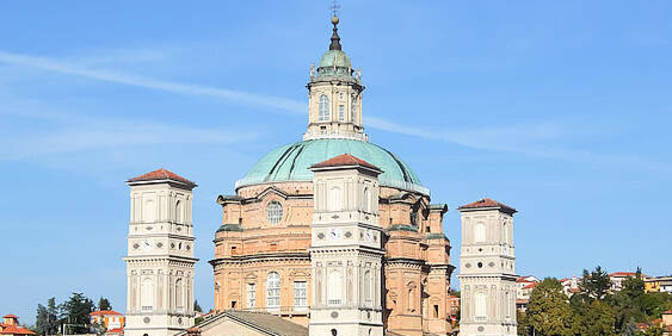 Le sanctuaire de Vicoforte dédié à la Vierge Regina Montis Regalis, dans la province de Cuneo, en Italie, est l'un des monuments les plus célèbres du Piémont, dans le voisinage immédiat de la localité de Mondovi. Sa construction est liée à une histoire qui remonte à 1596. On rapporte qu'il a été construit à l'endroit où se trouvait une colonne dominée par une statue de la Vierge à l'Enfant. Or un jour, un chasseur maladroit aurait atteint la statue de la Vierge avec sa flèche et celle-ci aurait saigné. C'est pourquoi très vite le lieu est devenu un lieu de vénération mariale. Plus tard, un sanctuaire surmonté de l'un des plus grands dômes elliptiques au monde a été construit au-dessus de la fameuse Vierge blessée, pour l'honorer. En plus du pèlerinage proprement dit, une « foire de la Madone » attire chaque année de nombreux visiteurs.