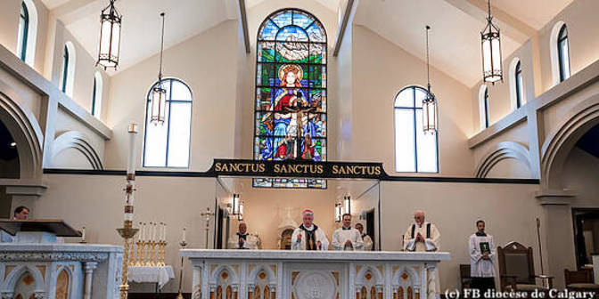 Le diocèse de Calgary au Canada vient d’inaugurer son tout premier sanctuaire marial, « Notre-Dame des Rocheuses » dans la ville de Canmore, situé à l’ouest de Calgary, au pied des Montagnes Rocheuses. Alors que les églises nord-américaines commencent à rouvrir, « Notre-Dame des Rocheuses » est désormais prête à accueillir les pèlerins. La ville de Canmore était jusqu’ici connue pour accueillir chaque année les épreuves de la Coupe du monde de ski de fond ainsi que pour la parfaite maitrise de la langue française de près d’un habitant sur cinq, dans cette région d’Alberta pourtant anglophone. Gageons qu’elle devienne prochainement célèbre pour son tout nouveau sanctuaire dédié à la Vierge Marie, une première pour le diocèse de Calgary. Le 30 mai dernier, alors que le pape François appelait à prier pour l’intercession de la Sainte Mère à l’heure de la pandémie mondiale, l’évêque du diocèse de Calgary, Mgr William Mc Grattan, a inauguré ce sanctuaire de 17.000 mètres carrés par une messe retransmise en direct. « À bien des égards, notre diocèse, sous le patronage de Marie, se devait d’avoir une église sanctuaire. Un lieu où les gens, de notre propre diocèse, du Canada mais aussi du monde entier, viendront, de la même façon qu’ils viennent découvrir « la cathédrale de la nature » que sont les Rocheuses. Ils pourront ici s’arrêter et prier, et faire l’expérience de la grande présence de Dieu qui vient habiter parmi nous dans ces demeures que nous lui construisons », a expliqué l’évêque du diocèse. La nouvelle église se trouve à la périphérie de la ville, près de l’autoroute transcanadienne, et est bien en vue lorsque les automobilistes arrivent. Ce qui réjouit le curé de la paroisse, le père Sinay, « on ne pouvait souhaiter meilleur emplacement et nous espérons que le clocher deviendra un phare d’espoir pour les gens d’ici ». Un sanctuaire marial n’implique pas une apparition de Marie (même si les lieux d’apparition sont des sanctuaires). Le sanctuaire est un haut lieu de spiritualité qui sert de refuge de la foi, d’accueil pour prendre du recul sur les aléas de la vie, un territoire où charité, pardon, humilité et paix sont sous haute protection. Les foules y sont invitées à venir en pèlerinage et de grandes grâces peuvent y être accordées. Assurément, la consécration d’un nouveau sanctuaire en pleine pandémie mondiale est un bel encouragement à aller de l’avant… Notre Dame des Rocheuses, porteuse d’espérance !