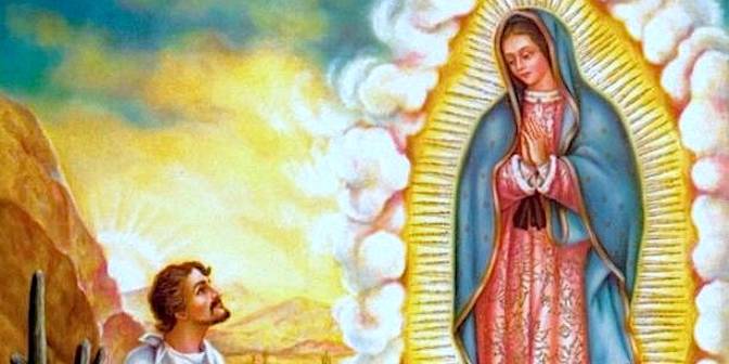 Sur la colline de Tepeyac, au nord de Mexico, un certain 9 décembre 1531, une jeune dame « éblouissante de lumière » apparaît à un indigène : Juan Diego Cuauhtlatoatzin. Elle se révèle à lui comme la Vierge Marie et le charge de demander à l'évêque de faire construire une église sur le lieu même de l'apparition. L'évêque, incrédule, demande au voyant d'obtenir de la Vierge Marie un signe. Celle-ci ne tarde pas à le lui accorder. Le 12 décembre, se montrant pour la quatrième et dernière fois à Juan Diego, Marie l'envoie cueillir des roses au sommet de la colline. Et voilà l'homme redescendant tout ébahi, sa tilma (son manteau) remplie des plus belles roses qu'il ait jamais vues en plein hiver ! Sous l'injonction de la Vierge, il retourne alors chez l'évêque, et ouvre son manteau devant les personnes réunies autour du prélat. Quelle stupeur pour tous de voir à cet instant s'imprimer miraculeusement sur la tilma une image représentant « La toujours vierge Marie de Guadalupe », comme elle s'est désignée elle-même. Elle a été déclarée Patronne des Amériques et étoile de l'Évangélisation par le pape Jean-Paul II.