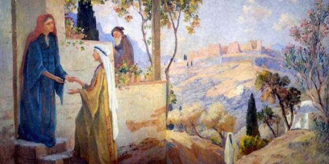 Après avoir annoncé à Marie le mystère de l'Incarnation, l'archange Gabriel la prévient que sa cousine Élisabeth, âgée et jusque là stérile, sera mère dans trois mois, par un nouveau prodige. Marie ne tarda pas à se mettre en route pour féliciter l'heureuse mère.