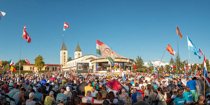 (1) Međugorje est une ville de Bosnie-Herzégovine devenue sanctuaire marial et lieu de pèlerinage catholique depuis la première apparition de la Vierge Marie sur la « colline des apparitions » en 1981, à quatre jeunes voyants. Les apparitions sont aujourd’hui moins fréquentes, mais certains voyants, reçoivent toujours de messages de la Vierge Marie pour le monde. Marie s’y est présentée sous le vocable de « Notre Dame de la Paix »