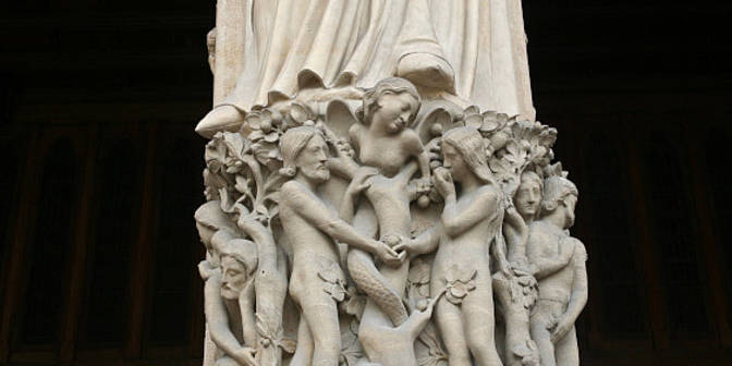 Marie, Vierge sans tache, a réparé la chute d'Eve : et elle écrase de son talon immaculé, la tête du serpent infernal. Fille de Dieu, Mère de Dieu, Épouse de Dieu.